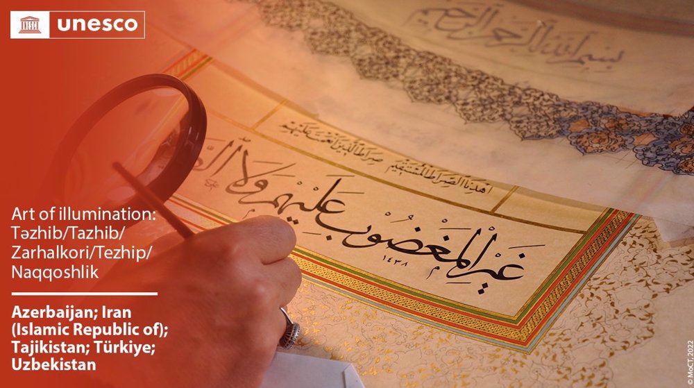 In another inclusion, UNESCO inscribed Tazhib, the Iranian art of illumination, on its list of intangible heritage based on a request by four countries of Iran, Tajikistan, Turkey and Uzbekistan.